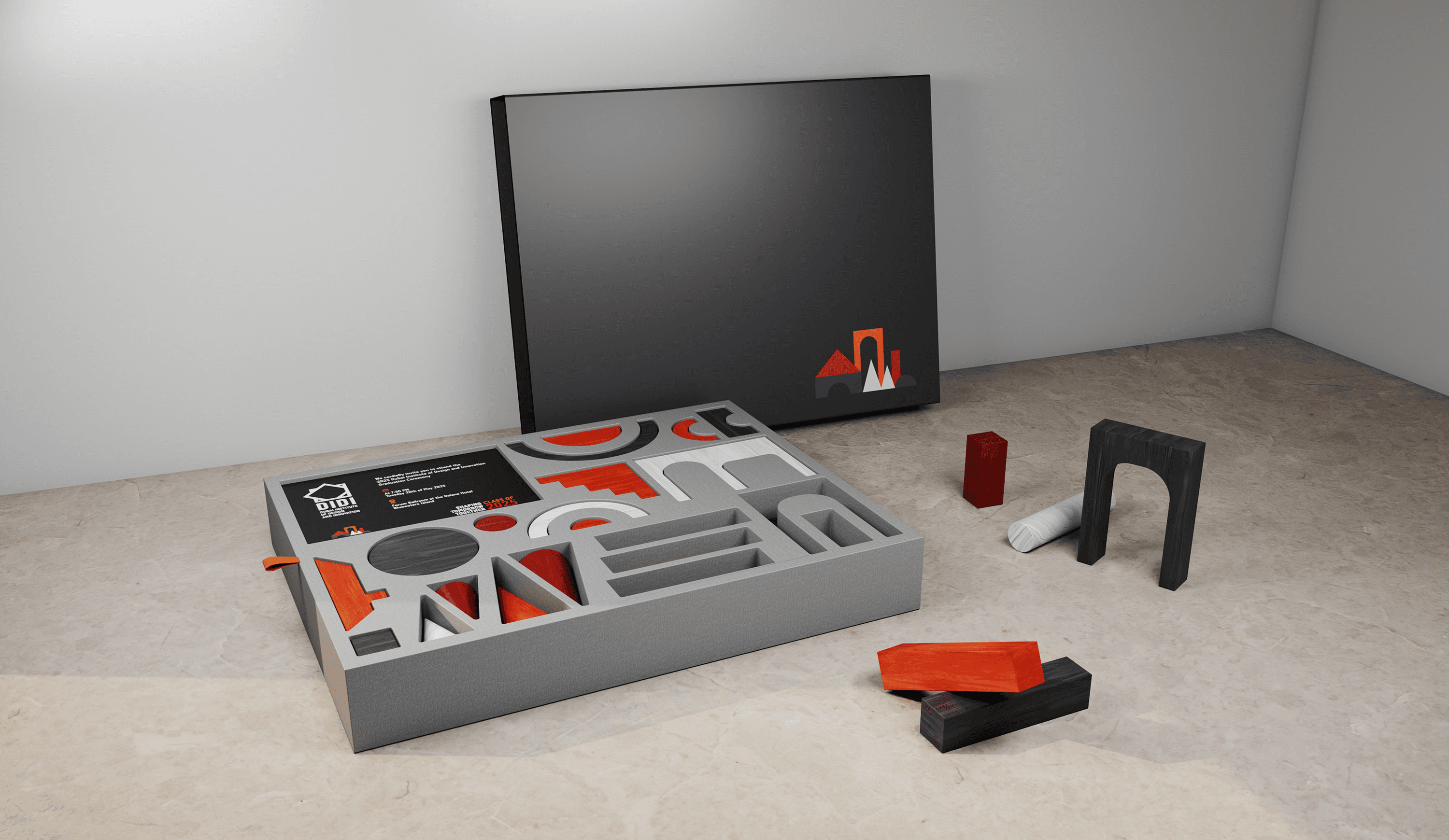 Conceptualized, modeled, and rendered series of playful, experimental invitation designs exploring creative forms and interactive storytelling for DIDI
