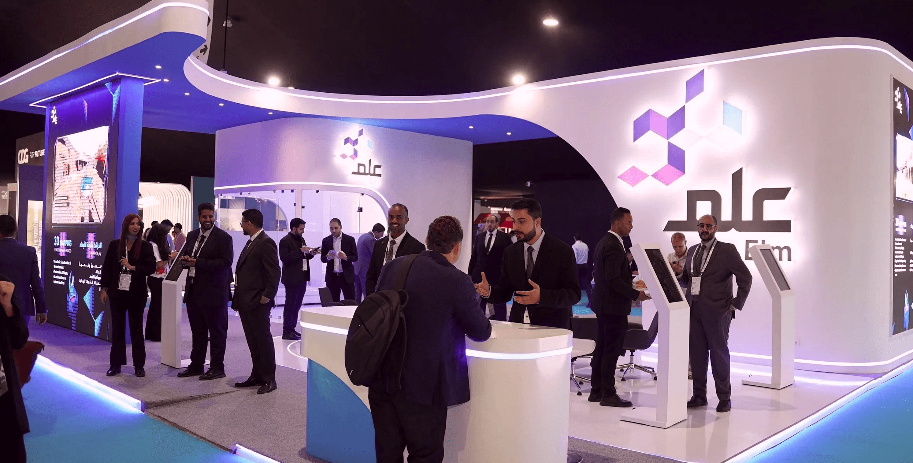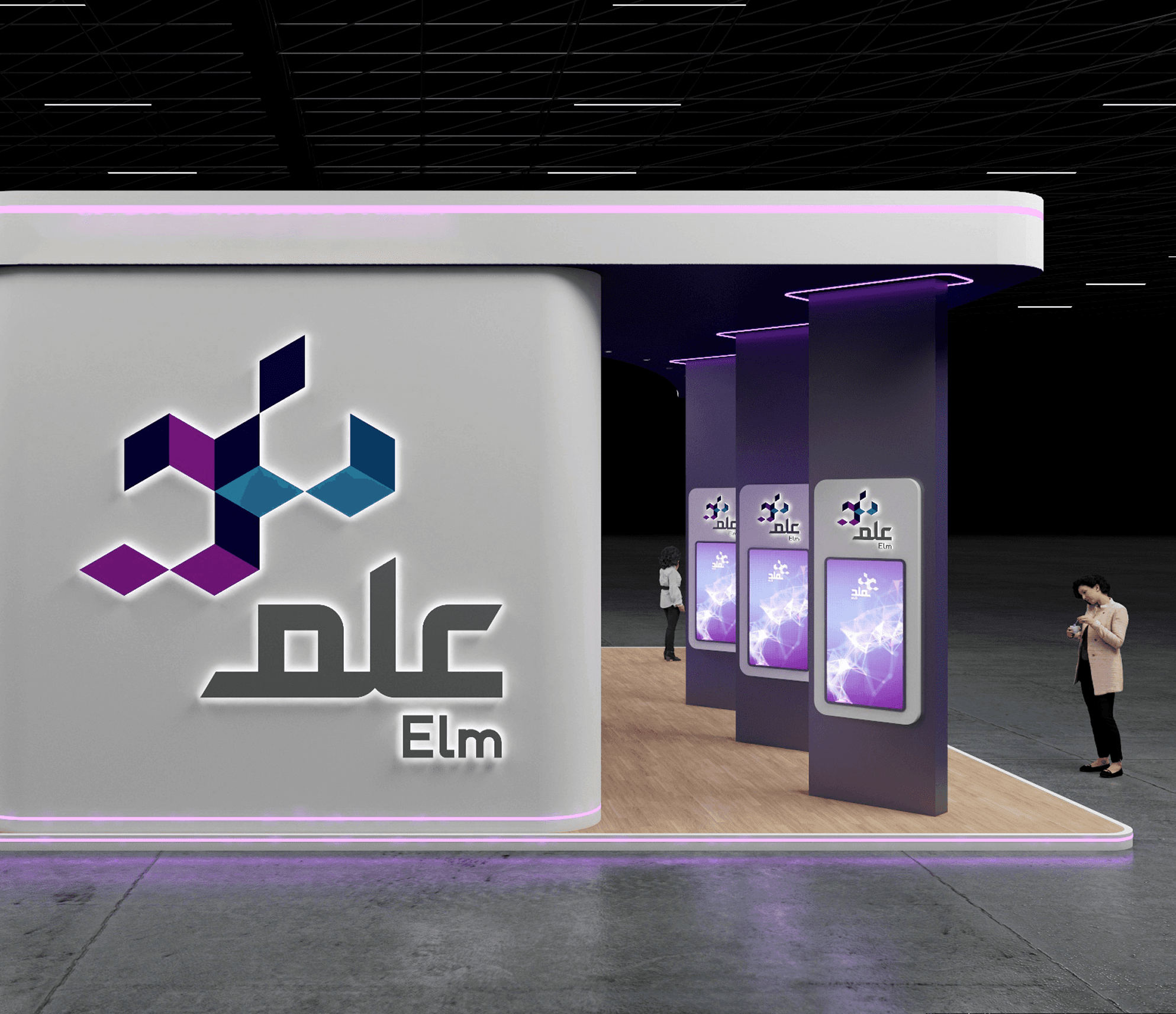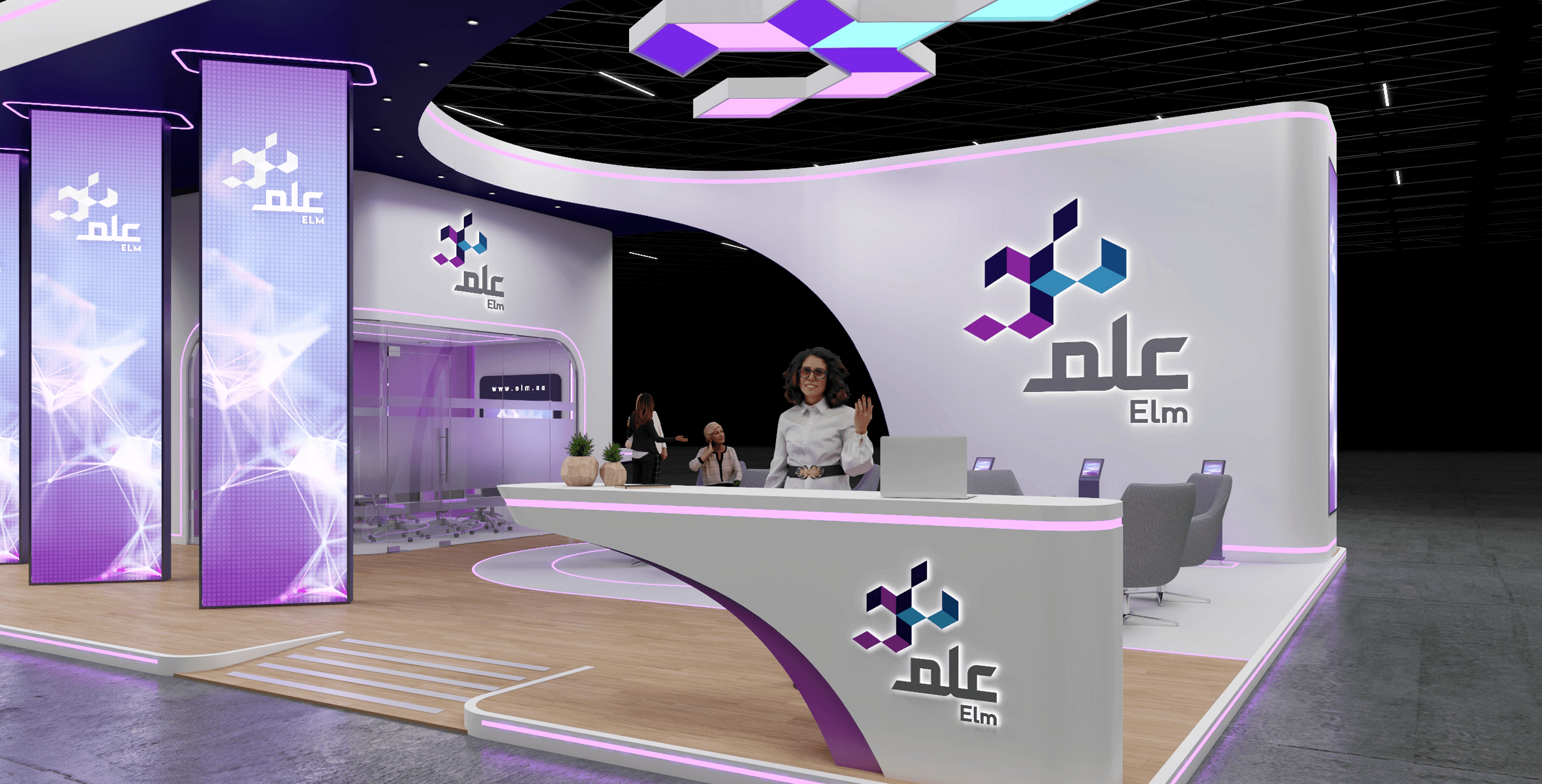 A dynamic exhibition space for ELM, combining technology-driven aesthetics with an immersive and interactive environment