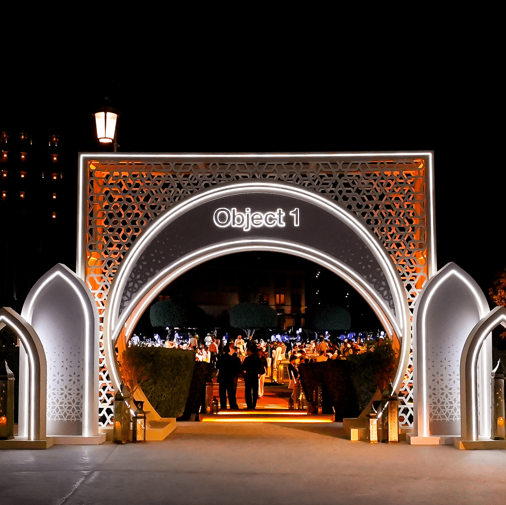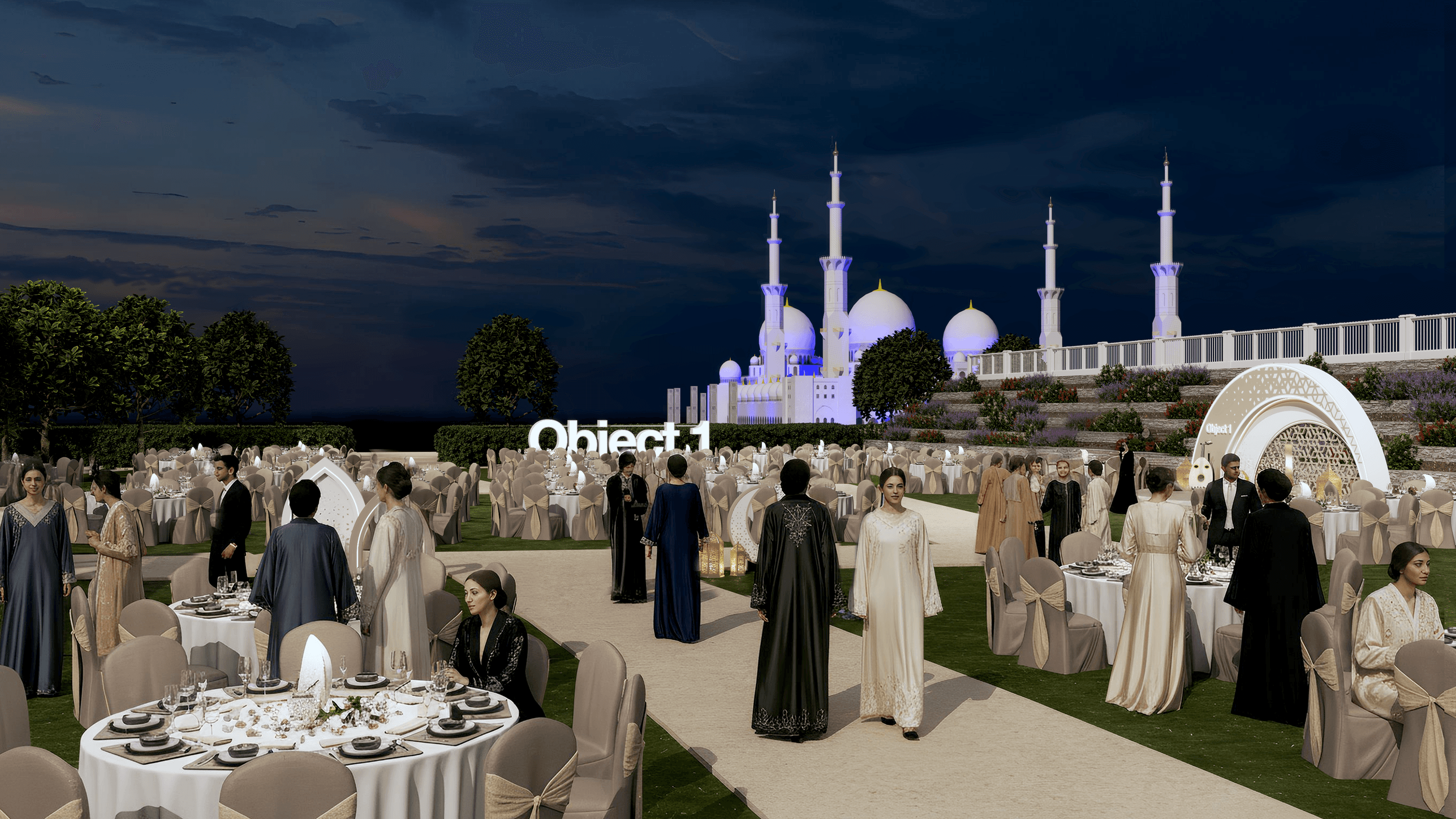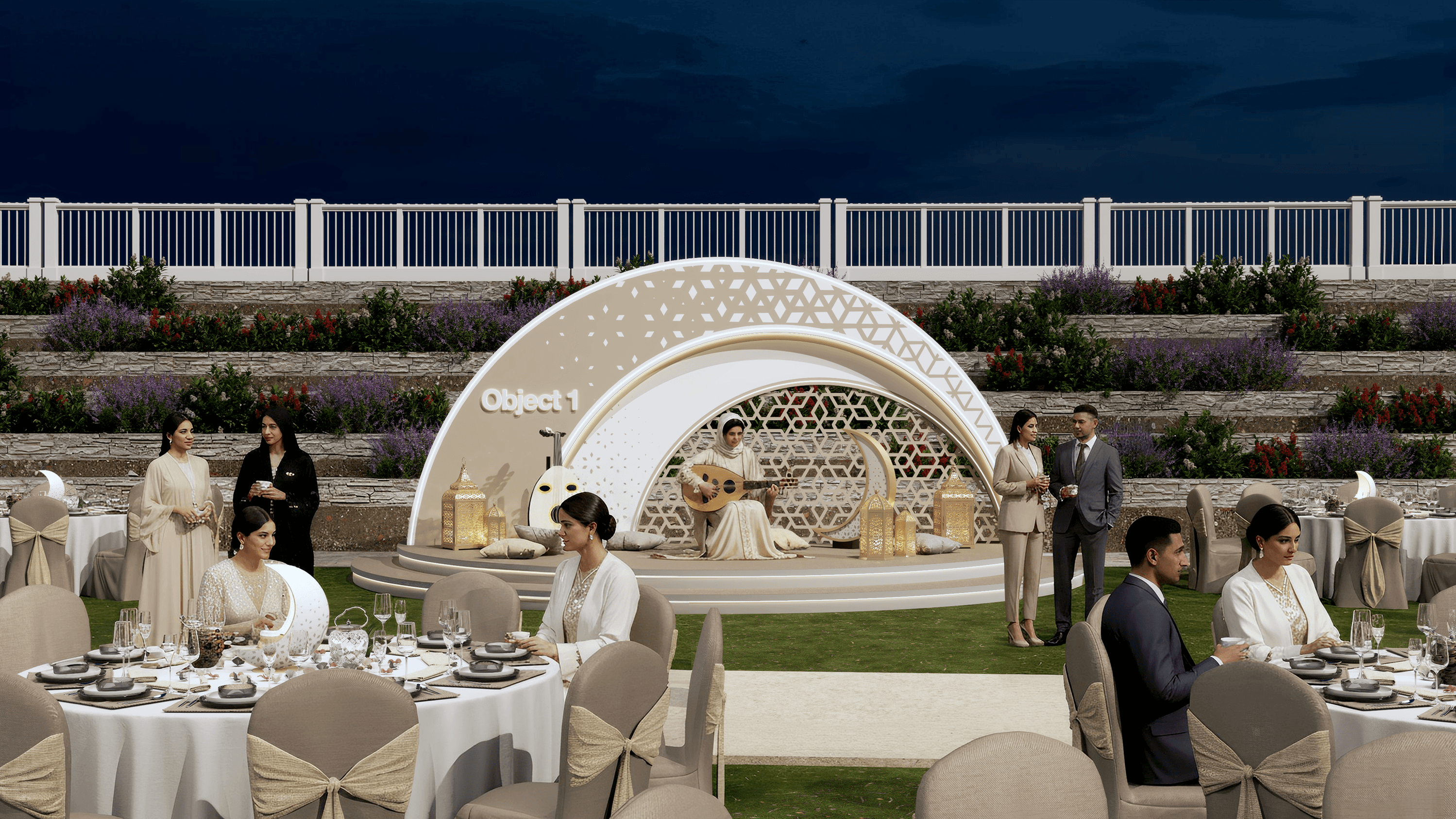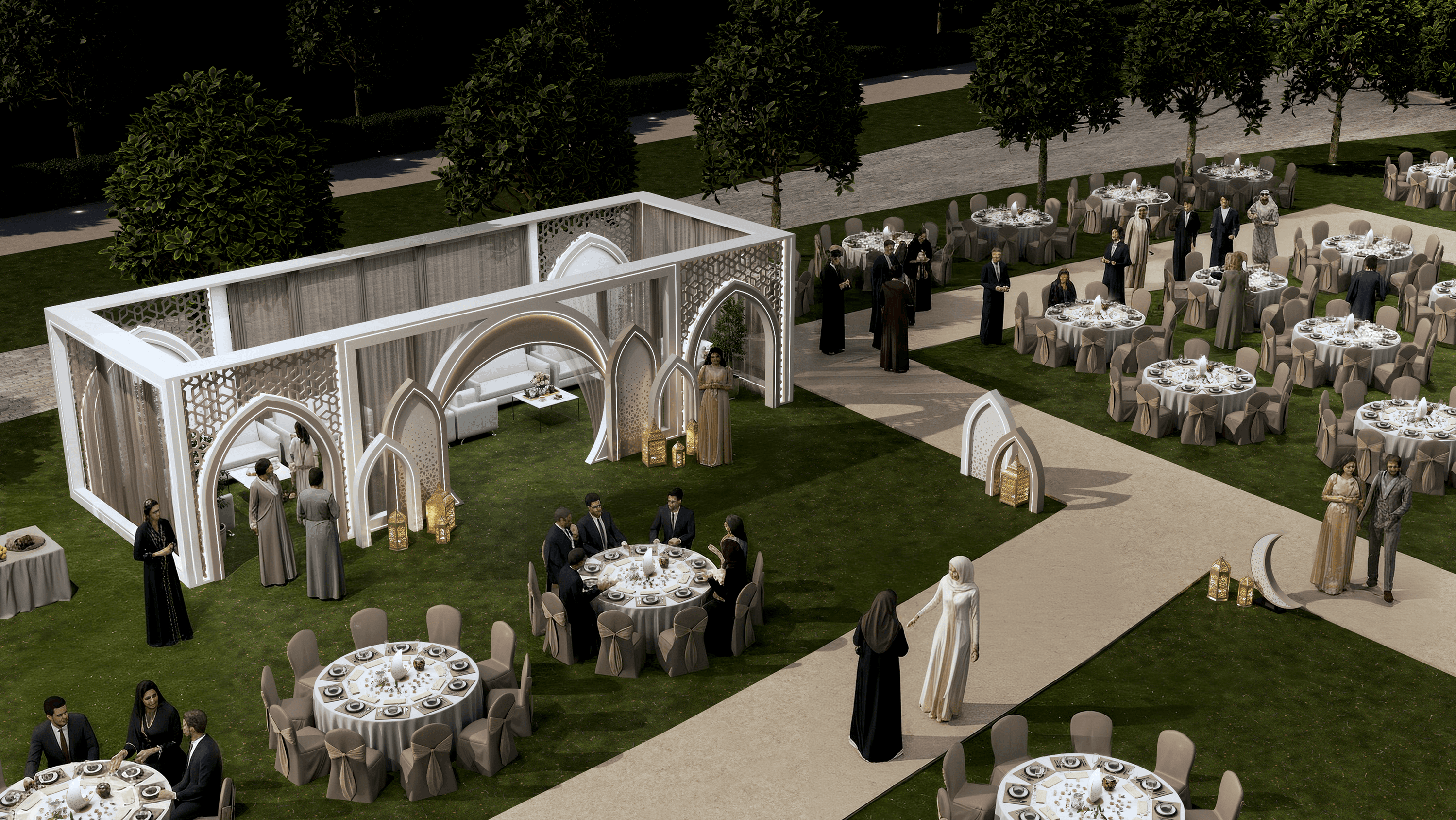 A Ramadan suhoor experience that merges traditional cultural elements with minimal, modern design, creating a refined and atmospheric setting for gathering and connection