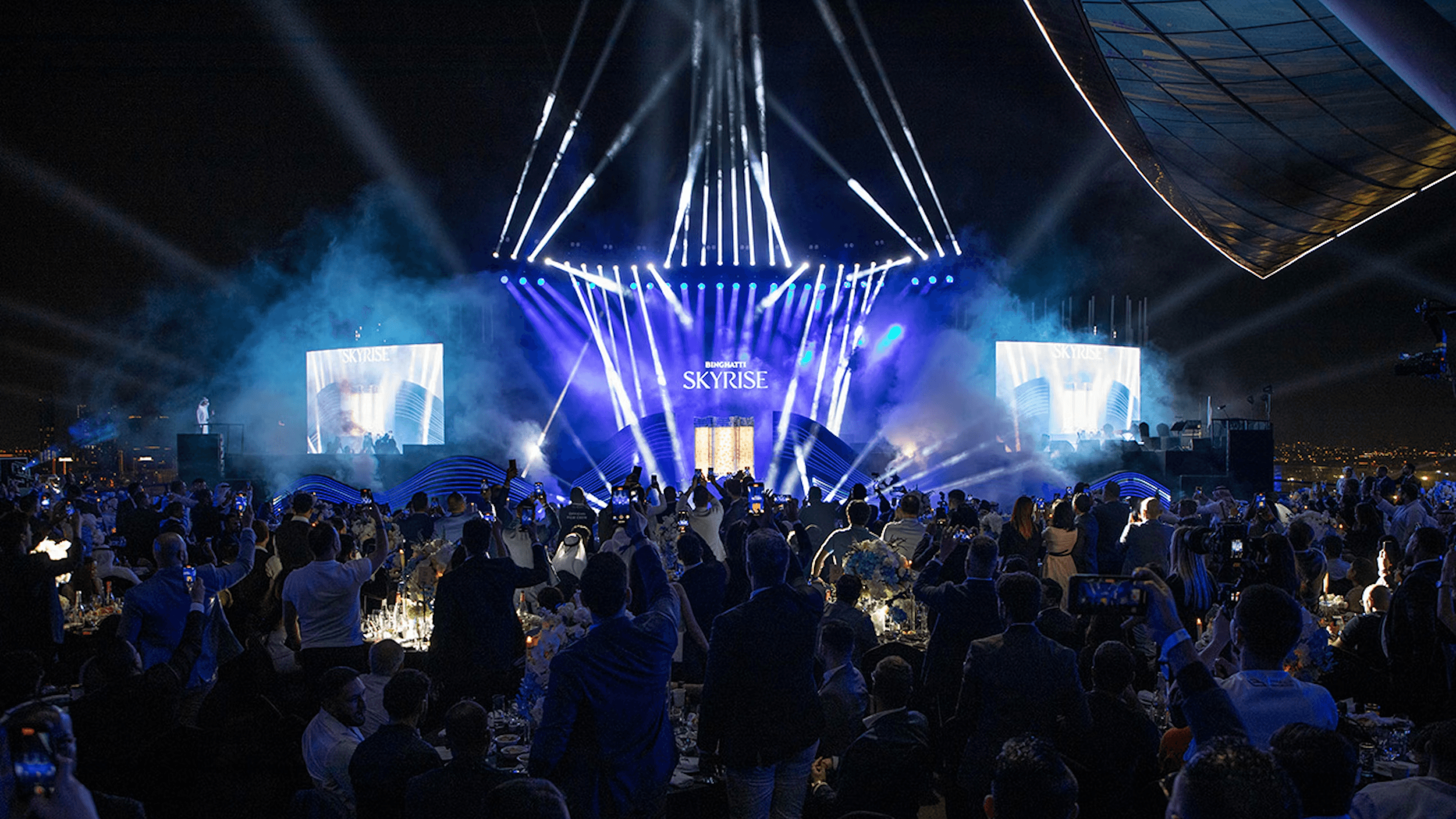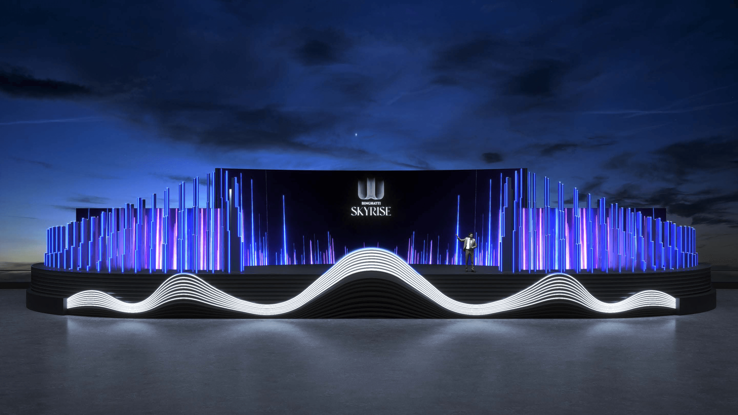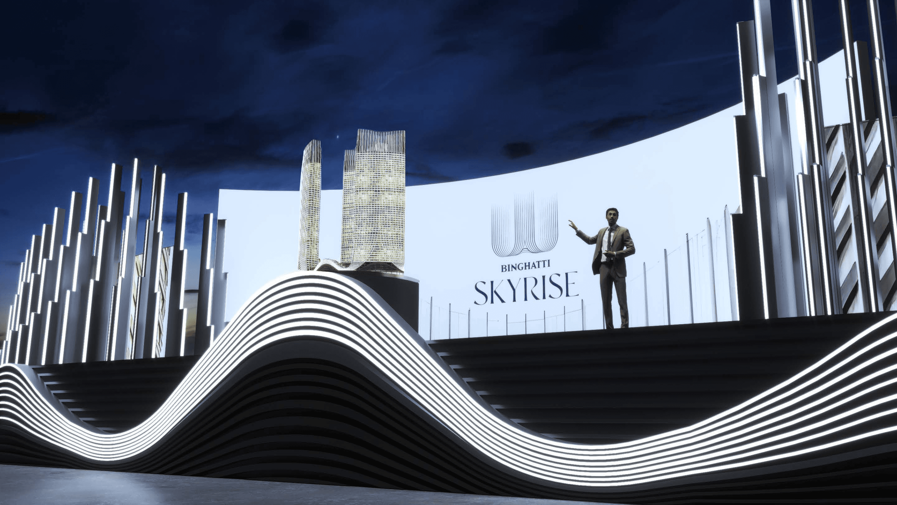 A launch showcase for Binghatti Skyrise, centered around visual storytelling and large-scale displays to highlight the project’s identity and presence